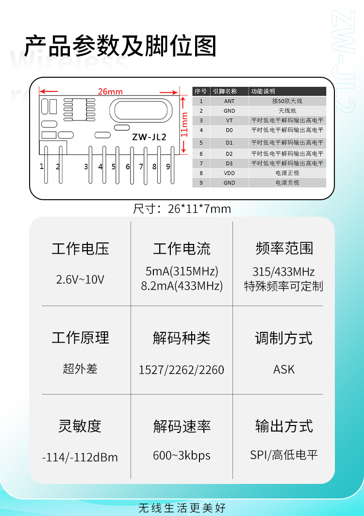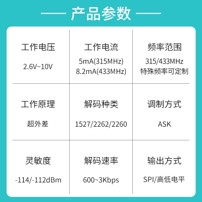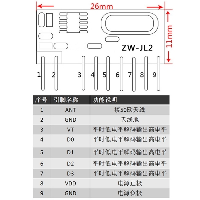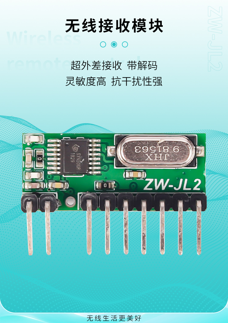 ZW-JL2是一款超外差带解码麻豆TV在线观看接收模块,它具有高灵敏度、抗干扰性强、性价比高等特点